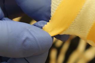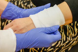 Abbildung: Bindenverband beenden: verkleben - Problem Handschuh