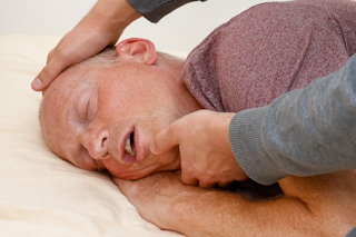 freihalten der Atemwege durch Anheben des zurückgefallenen Zungengrundes