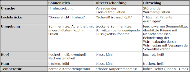 Sanitätsausbildungen: Abgrenzung Sonnenstich / Hitzeerschöpfung / Hitzschlag