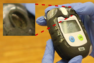 Abbildung: Sichtprüfung Kohlenmonoxidwarngerät - Schritt 2 | Staub- und Wasserfilter des Gaseintritt unbeschädigt und fest verklebt |