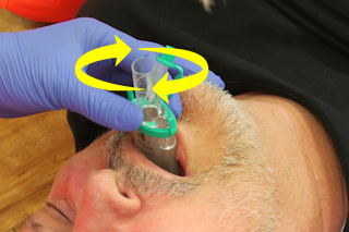 gegebenenfalls mögliche Blockade durch mehrmalige 30 Grad Drehung der i-gel Maske in der Längsachse überwinden