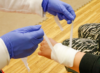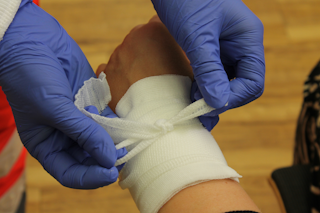 Praxisanleitung: Bindenverband beenden - einschneiden