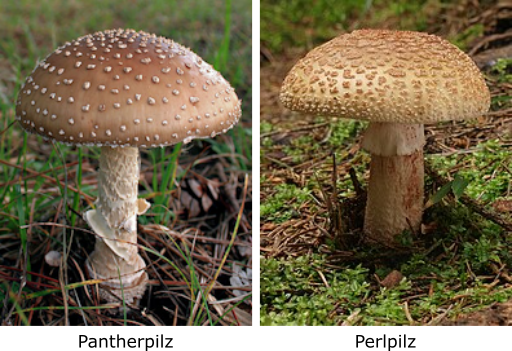 Der Pantherpilz wird leicht mit dem bei Pilzsammlern belieben Perlpilz verwechselt.
