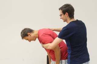 Abbildung: schwere Atemwegsverlegung (Erwachsener) - Schritt 9 | Oberkörper des Patienten nach vorne beugen |