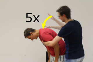 fünf Rückenschläge und fünf Oberbauchkompressionen im Wechsel fortsetzen