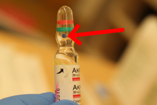 Glasampullen müssen in der Regel nicht mehr angesägt werden, da dies bereits vom Hersteller vorbereitet wurde (unterhalb des farbigen Punktes am Ampullenhals).