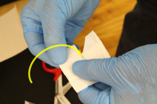 Wundschnellverband mit Wundkissen nach innen im ersten Drittel knicken