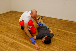 Praxisanleitung: Seitenlage - Erwachsener aus Bauchlage herstellen