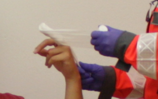Verbandpäckchen patientennah aus Verpackung entnehmen
