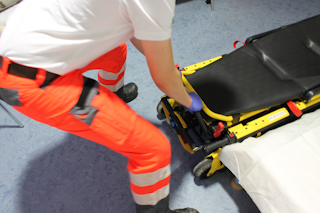 Standsicherheit und Bremsen von Bett und Trage überprüfen