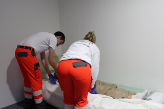 Helfer 2 Patienten wieder auf den Rücken drehen