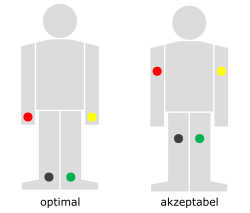 Bei der Anlage eines 12-Kanal-EKGs zur Diagnostik ist unbedingt darauf zu achten, dass die Extremitätenableitungen tatsächlich an den Extremitäten angebracht sind. Schon geringe Abweichungen können zu EKG-Veränderungen führen (zum Beispiel unterschiedliche Amplituden im QRS-Komplex oder Veränderungen im ST-T-Segment), die im schlimmsten Fall Fehldiagnosen nach sich ziehen. Eine Platzierung auf den körpernahen Teil der Extremitäten (Oberarme, Oberschenkel) ist hierbei ausreichend, da sich die Richtung des elektrischen Feldes entlang der Extremität nicht mehr verändert. [1]