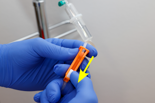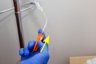 Abbildung: Oberkörper entkleiden (Infusion) - Schritt 15 | korrekten Durchfluss überprüfen |