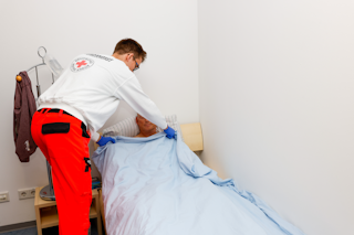 Mehr Informationen zum Be- und Entkleiden eines Patienten finden sie in der Praxisanleitung Patienten be- und entkleiden.