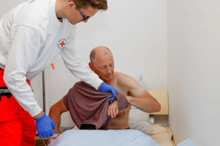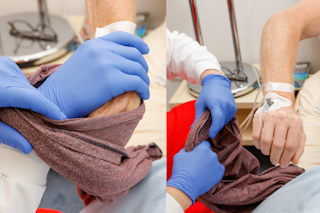 Praxisanleitung: Patienten entkleiden - Oberkörper (bei laufender Infusion)