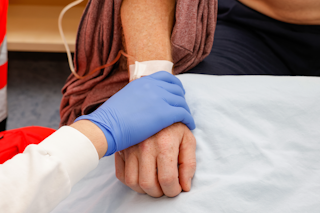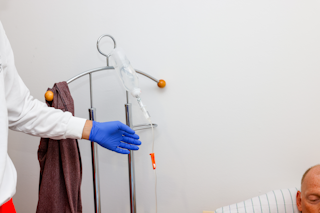 zu entkleidende Patienten, die bereits mit einer Infusion versorgt sind