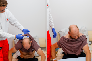 Abbildung: Oberkörper entkleiden (Infusion) - Schritt 4 | gegebenenfalls Brille abnehmen / abnehmen lassen und sicherstellen |