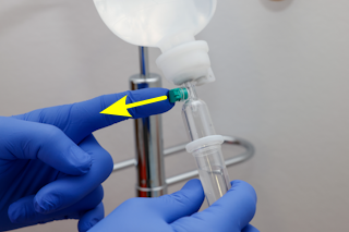 Abbildung: Oberkörper entkleiden (Infusion) - Schritt 13 | gegebenenfalls Belüftung am Infusionsgerät öffnen |