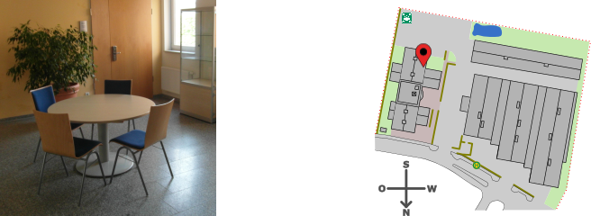 Lounge der Ausbildungsabteilung im Erdgeschoss des Haupthauses