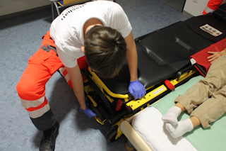 Standsicherheit und Bremsen von Bett und Trage überprüfen
