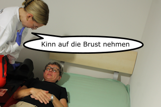 Helfer 1 Patienten auffordern, Kinn auf die Brust zu nehmen