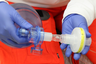 Finger entspannen, so dass Beatmungsbeutel sich wieder selbstständig mit Luft füllen kann