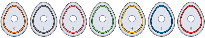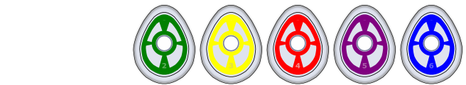 Die verschiedenen Größen sind durch Nummern oder unterschiedliche Farben der Auflagefläche (Schild) kodiert.