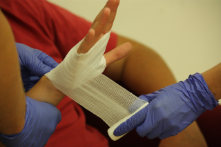 Praxisanleitung: Handverband anlegen - Verbandpäckchen