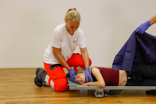 Praxisanleitung: Patienten auf Trage verbringen - Grätschstand (Seitenlage)